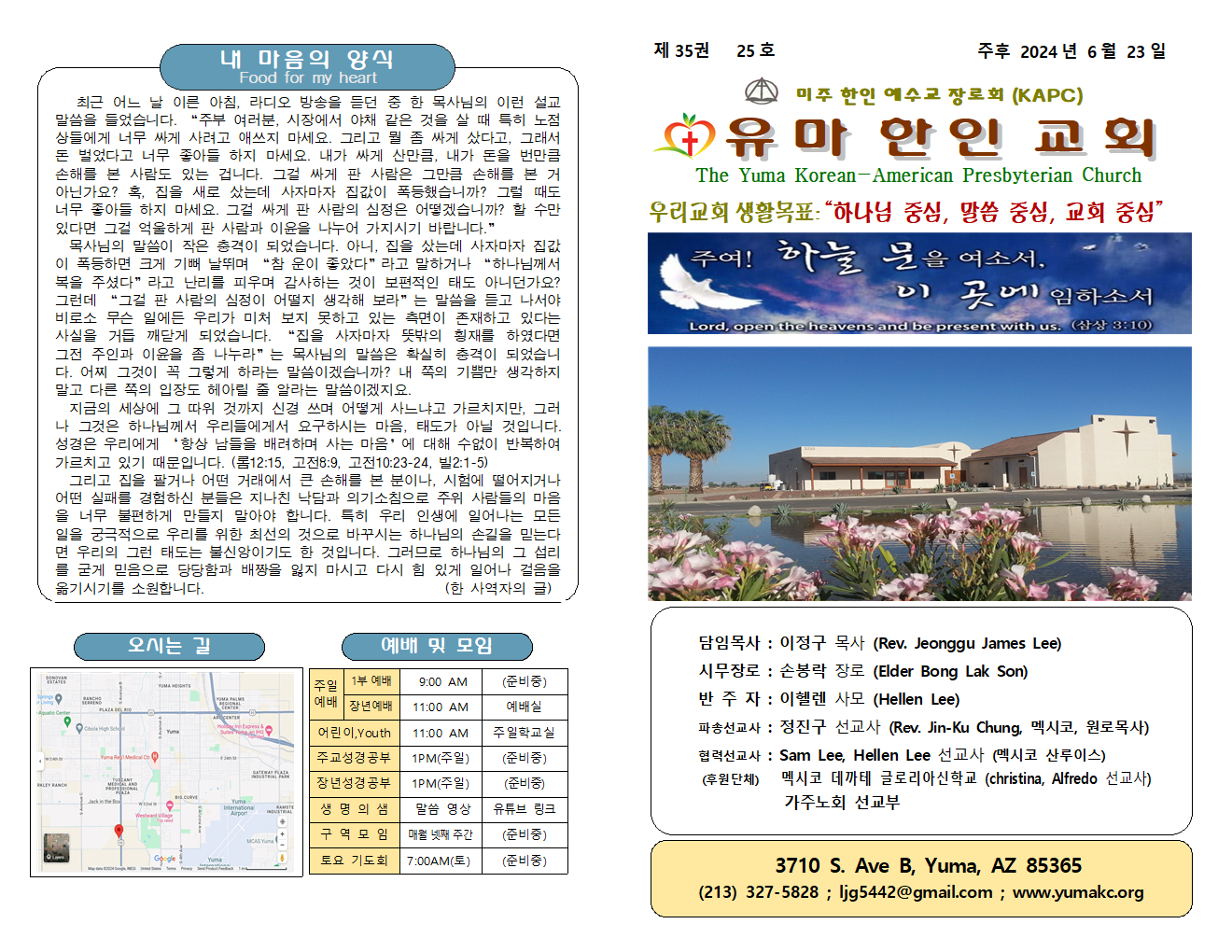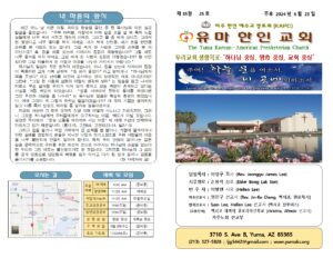 Tel. (213) 327-5828 | Email: ljg5442@gmail.com | 유투브채널 : 유마한인교회(이정구목사)@ljg5441
