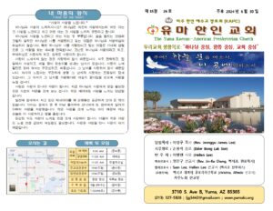 Tel. (213) 327-5828 | Email: ljg5442@gmail.com | 유투브채널 : 유마한인교회(이정구목사)@ljg5441