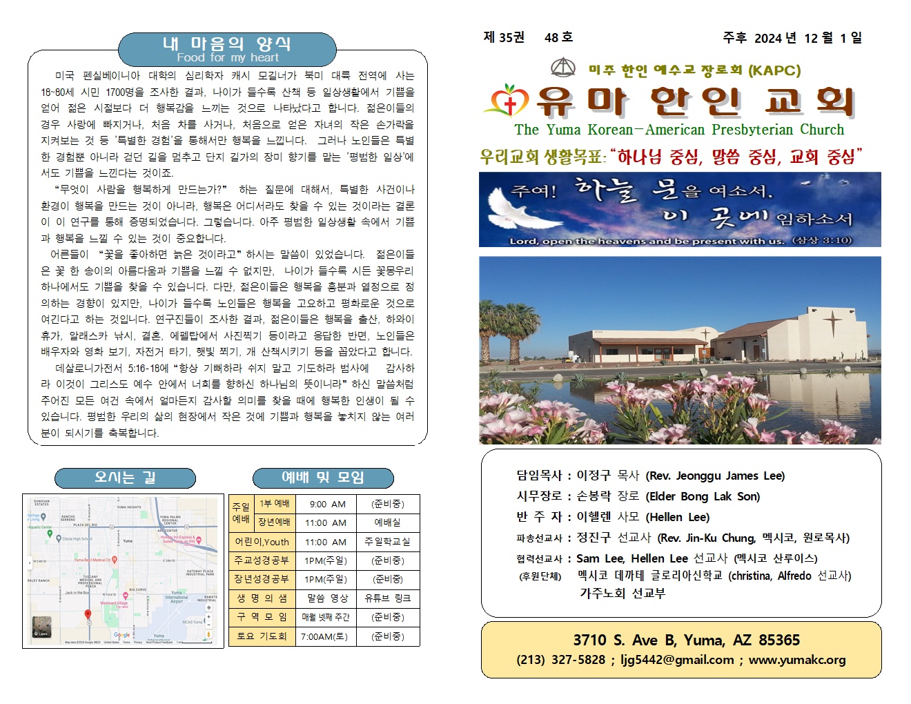 Tel. (213) 327-5828 | Email: ljg5442@gmail.com | 유투브채널 : 유마한인교회(이정구목사)@ljg5441
