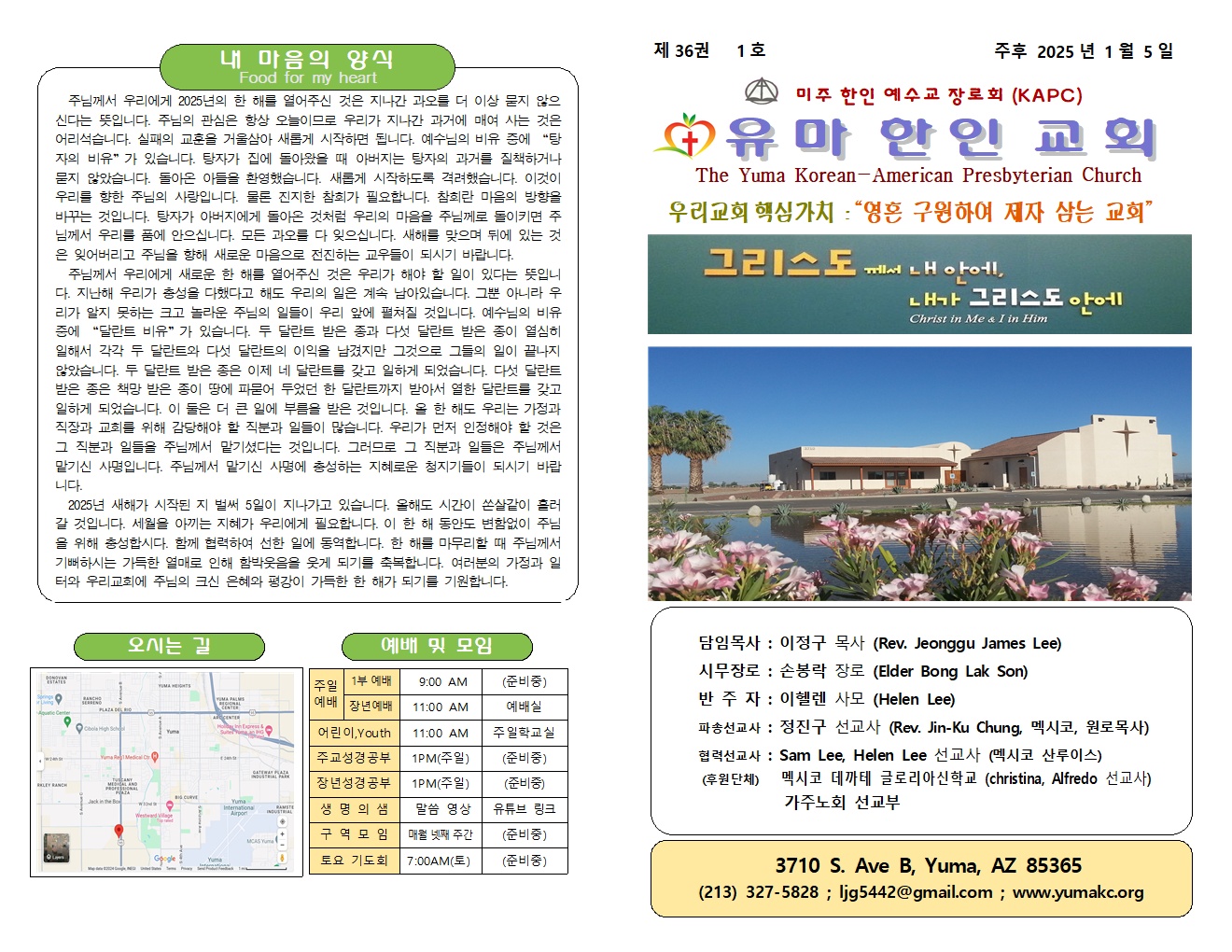 Tel. (213) 327-5828 | Email: ljg5442@gmail.com | 유투브채널 : 유마한인교회(이정구목사)@ljg5441