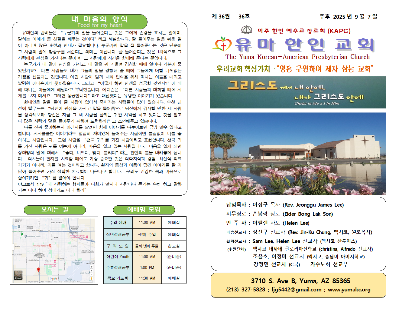 Tel. (213) 327-5828 | Email: ljg5442@gmail.com | 유투브채널 : 유마한인교회(이정구목사)@ljg5441