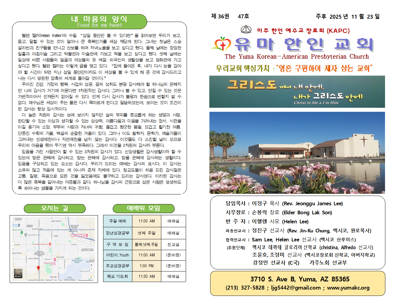 Tel. (213) 327-5828 | Email: ljg5442@gmail.com | 유투브채널 : 유마한인교회(이정구목사)@ljg5441